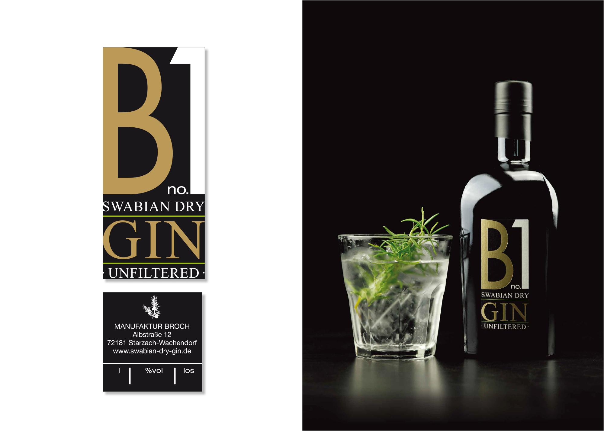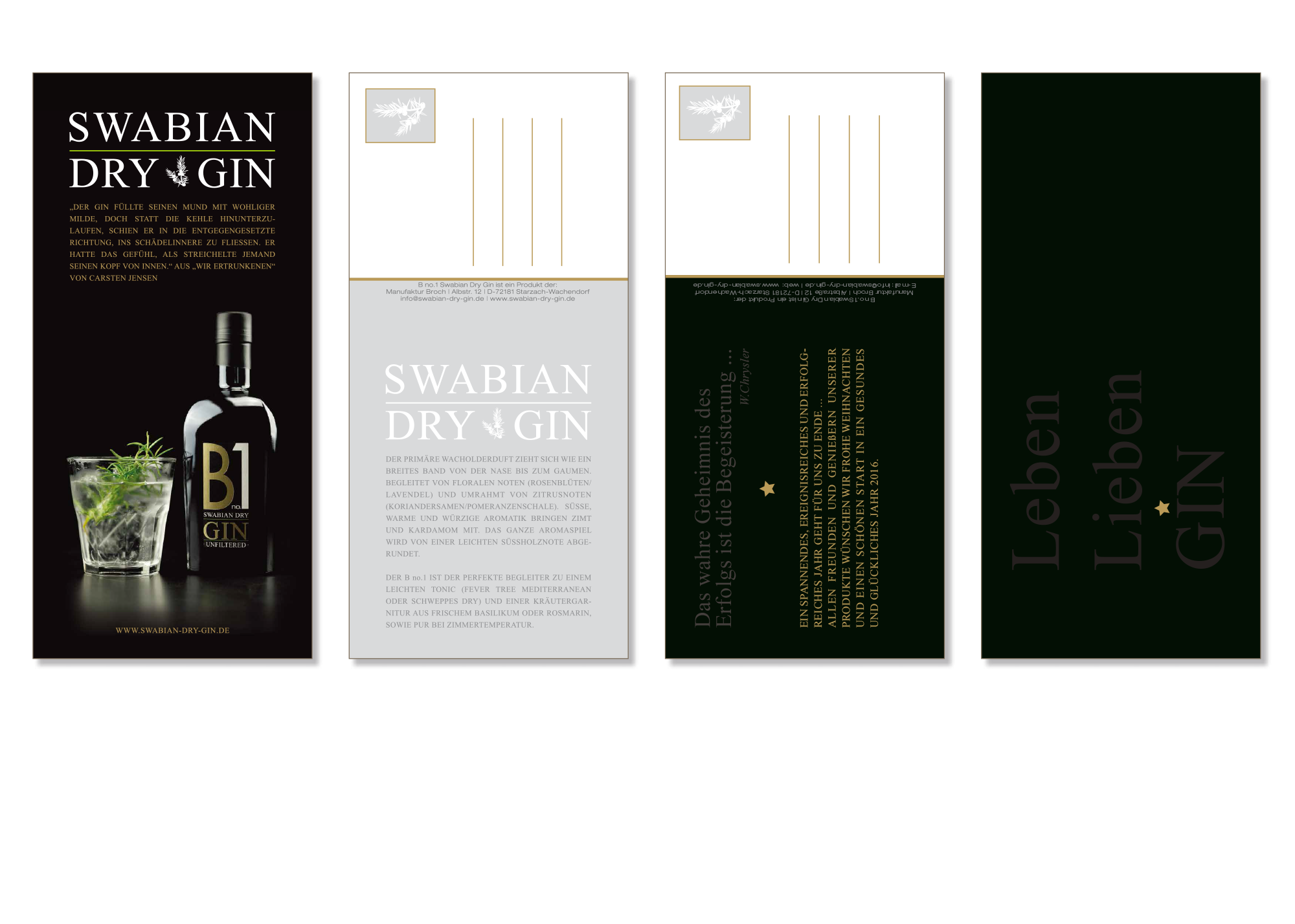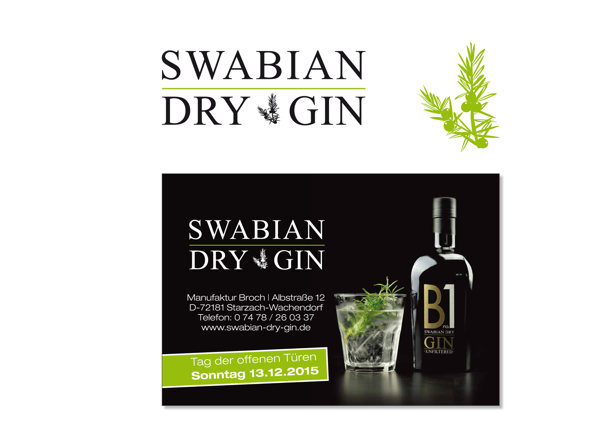 Entwicklung eines eigenständigen Erscheinungsbildes (Corporate Design) für den „SWABIAN DRY GIN“ der Brennerei Broch in Wachendorf.